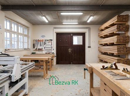 Přízemí: 532 m² – truhlářská dílna, kanceláře, kuchyňský kout, skladovací prostory, sociální zázemí