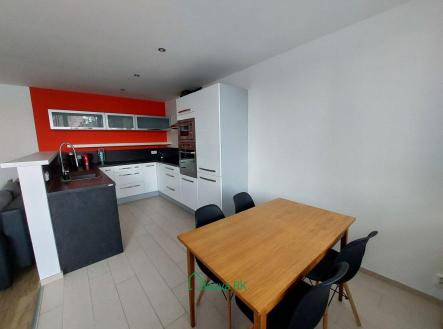 Prostorný obývací pokoj má částečně oddělený prostor jídelním koutem vybavený kuchyňskou linkou na míru včetně spotřebičů ( myčka, indukční deska, trouba, mikrovlnná trouba), jídelním stolem, sedací soupravou, úložnou skříňkou, konferenčním stolkem, televizní skříňkou. V předsíni je velká vestavěná skříň na míru, pračka a sušička. Dětské pokoje jsou vybavené šatní skříní, koupelna vanou a sprchovým koutem.